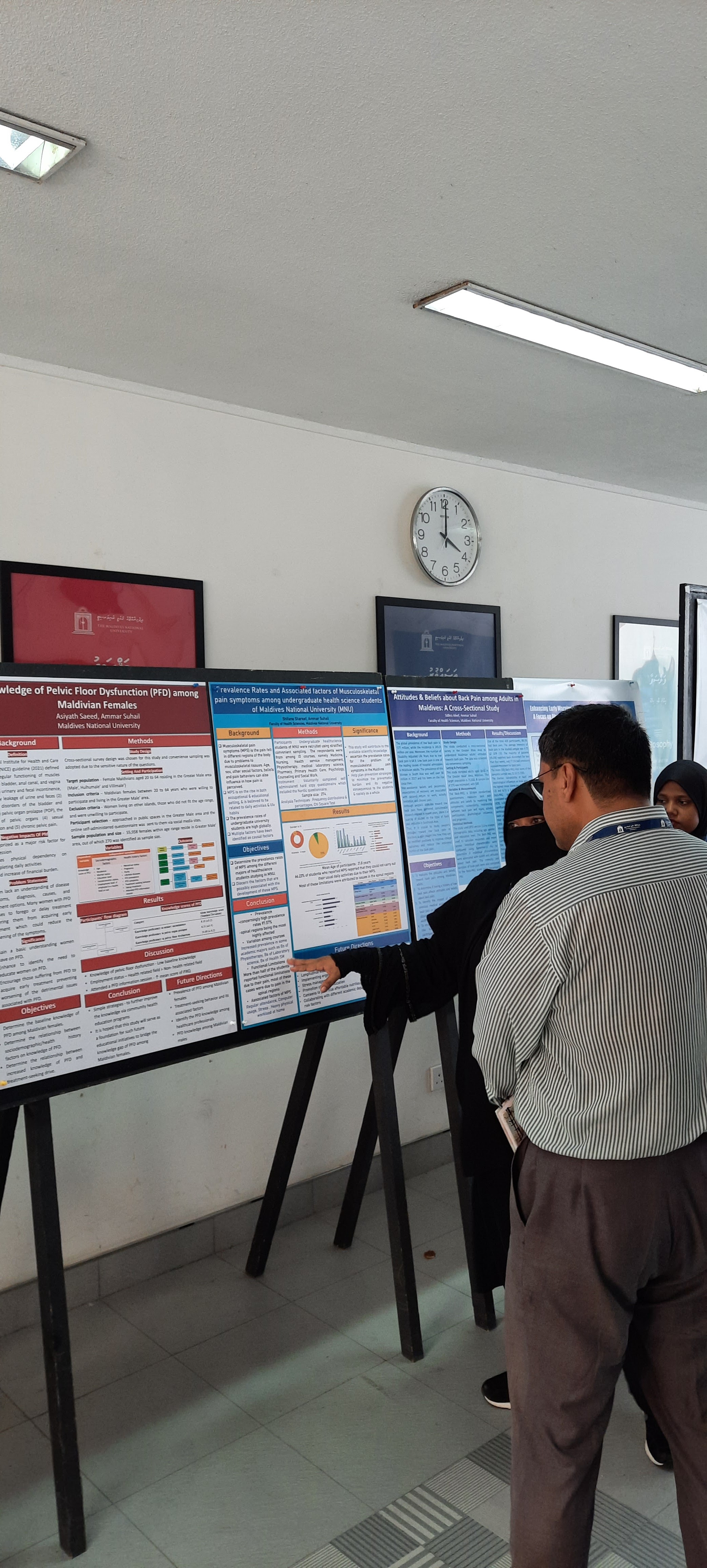 - Asiyath worked on pelvic floor dysfunction among Maldivian females. I still remember the many conversations we had about how to handle such a sensitive topic respectfully while ensuring methodological rigor. She is currently preparing her manuscript.